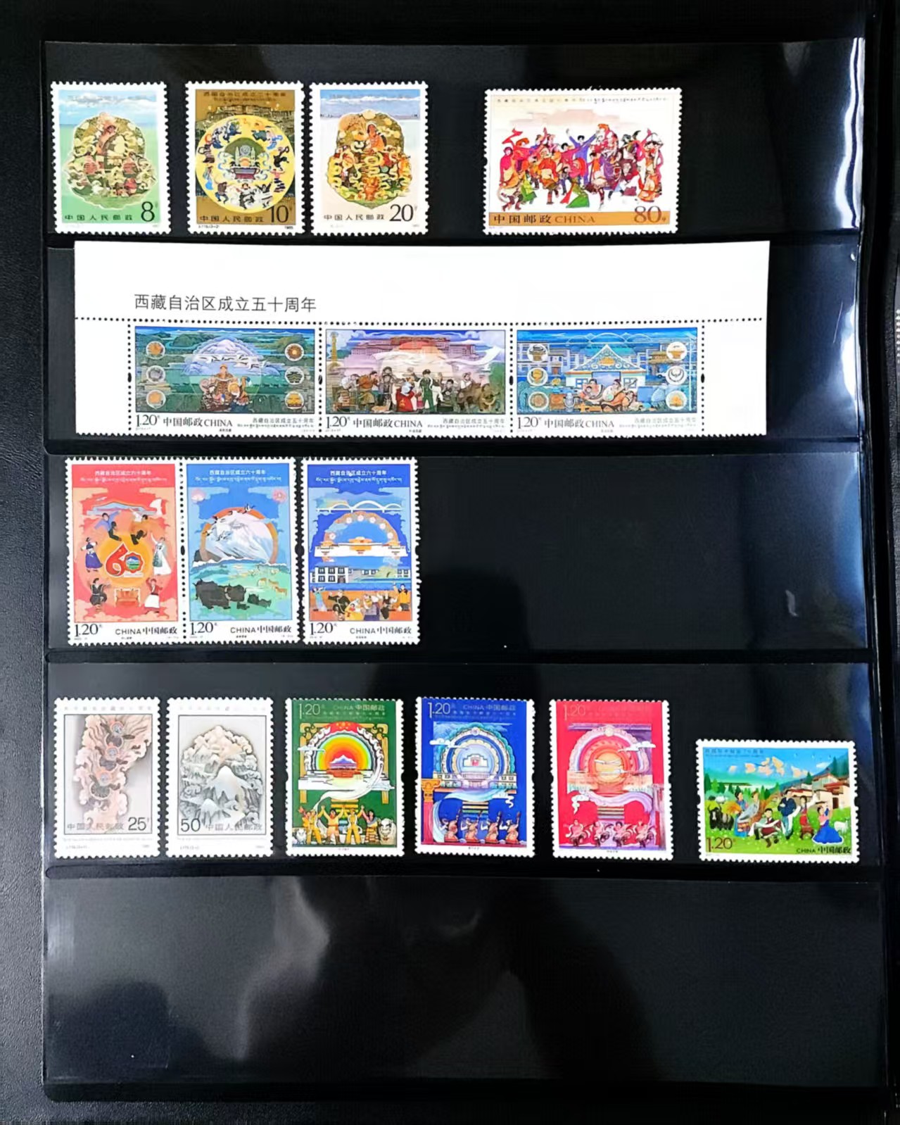 第一次知道自治题材的邮票还是在1997年,那是内蒙古自治区成立50周年的邮票,虽然当时不知道内蒙古在哪里,更不知道成立五十周年有什么意义,单纯只是觉得“欢庆”这枚票非常好看,漂亮的几何图形重叠出光圈,非常喜欢。那时虽然还是小学生,但已经开始喜欢上集邮,把家里父辈祖辈的信件都霍霍完了,便开始买新邮,完全不知道邮票是怎样发行了,只得每次路过书店的时候,瞄一眼有没有新来的邮票。